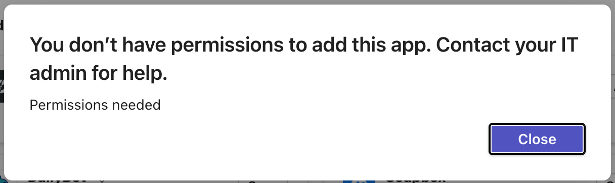 This guide shows IT admins how to enable the Decisions app when users are seeing “You don’t have permissions to add this app. Contact your IT admin for help.”