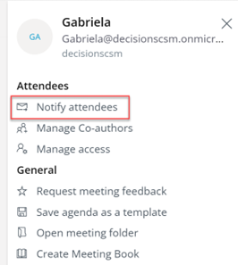 - At this point, you can also choose to notify the attendees. To access the option, open the Menu (3 line "hamburger" symbol).
