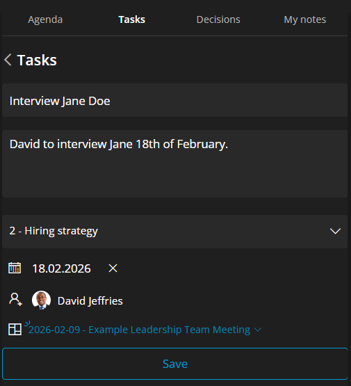 - Review past Agendas, decisions and tasks in Decisions